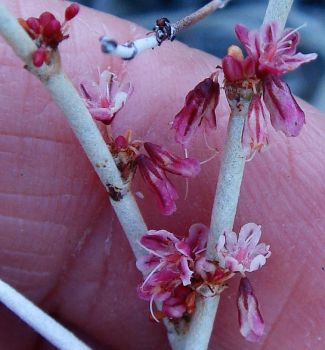 Don't forget the species with beautiful smells, too! We came across several desert mistletoe, Phoradendron californicum, whose delightful fragrance we could smell from one hundred feet away or so. On the Alternate Trail, we smelled one that we couldn't even find. Rock crossosoma, Crossosoma bigelovii; and lotebush, Ziziphus parryi; also produce heady fragrances that make one wish just to hang around them to continue delighting in their fragrance.