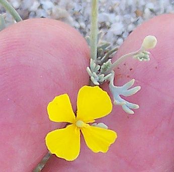 As is often the case, the number of plants in bloom in the Borrego Badlands was way less here than we observed any place else so far this year. We found a grand total of 4 plants in bloom, each a different species.
