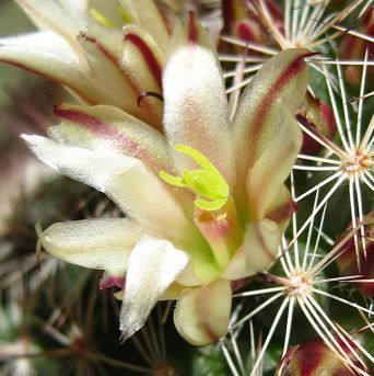 The stars of the show today were a few specimens of California fish-hook cactus, Mammillaria dioica, in full bloom along the portion of the trail in the alluvial fan, and the first few plants of desert apricot, Prunus fremontii in bloom (both pix by Mike Crouse).