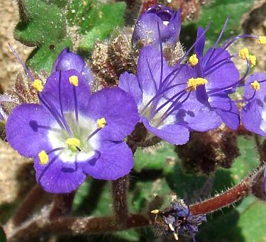 Just in the drive to the trailhead from Split Mountain Road, we commented on how beautiful the common phacelia, Phacelia distans, plants were that are in full bloom underneath many shrubs. Its flowers here are an unusually-beautiful deep rich blue-purple, compared to just the usual blue elsewhere.