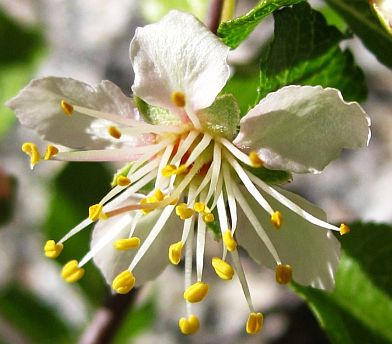 1/28/10: Borrego Palm Canyon: Palm Grove Loop. The biggest delight of the day was to quite unexpectedly see the rock crossosoma, Crossosoma bigelovii, in beautiful fragrant bloom. The scent was very strong and delightful, and the plants were beautiful, covered with bloom.