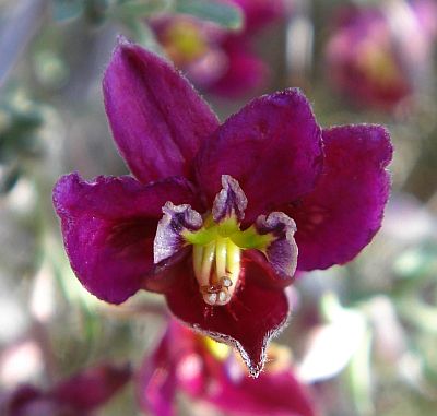 1/27/11: Mine Wash, Mine Canyon. Mine Wash Road is just glorious with chuparosa in bloom along the lower part of the road near SR78. Parry's marina, Marina parryi, is in full bloom along the last half of the road, but you have to get out of your car and look at it up close to appreciate its beautiful dark blue blooms.