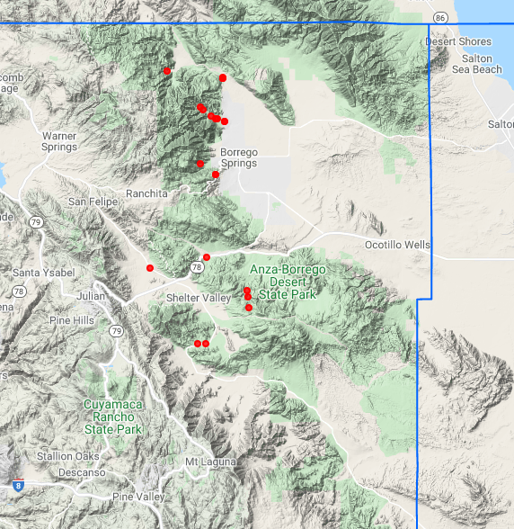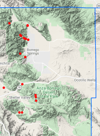 16 January 2022. Tom Chester and Don Rideout report finding just one or two plants each of only five species in bloom (see iNat obs of four of them), in the first 2.5 miles of the Villager Peak Trail. No germination was observed, and almost all of the plants there looked to be in their summer dormant state, with not a single ocotillo having leaves.