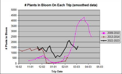 All good bloom years are different. This good year is the most different winter bloom season we have had since at least 2005.