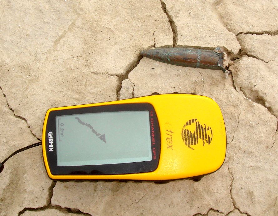 They didn't do a very good job of cleaning up after the training, since there are a number of 0.50 caliber bullets and cases littering the ground, along with the clips holding the bullets together in the ammunition belt. See pictures of bullet in ground 1, bullet in ground 2, bullet and case. For comparison, see 0.50"/90 (12.7 mm) M2 Browning Machine Gun.