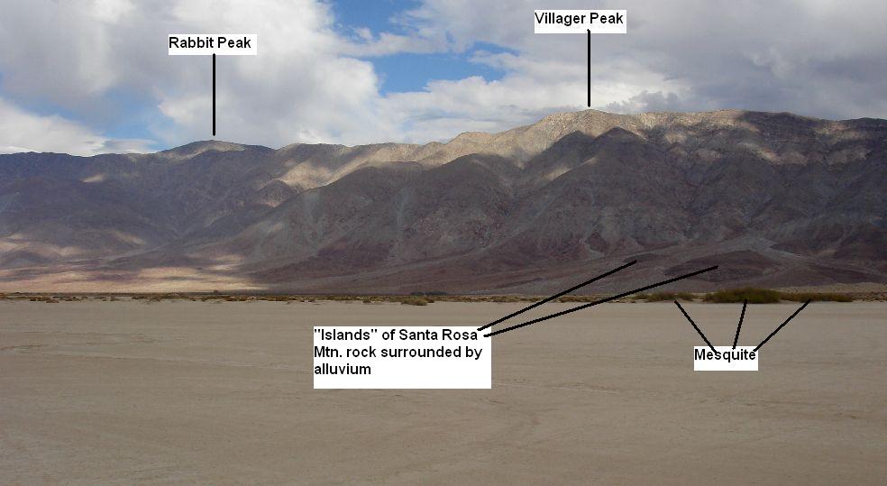 View from southeastern portion of Clark dry Lake looking northeast to Rabbit and Villager Peaks: