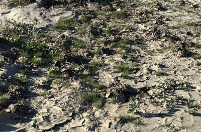 - In areas where the slow-moving water continues after depositing some of its mud, only non-native plants thrive under those conditions, since we have few or no native desert plants that can stand those conditions. This accounts for the extensive weed pit at the eastern end of the straight section of Henderson Canyon Road, at the end of the "Mud deposits" section shown in Fig. 1. That area is dominated by Sisymbrium irio, Brassica tournefortii, Chenopodiastrum murale, Amaranthus albus, Amaranthus blitoides, Phalaris aquatica, and Schismus barbatus.