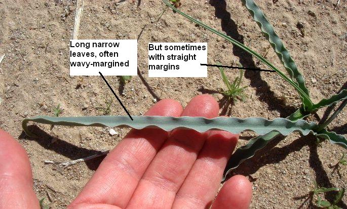 - Long narrow leaves coming mostly from ground level, often wavy-margined (but not always)