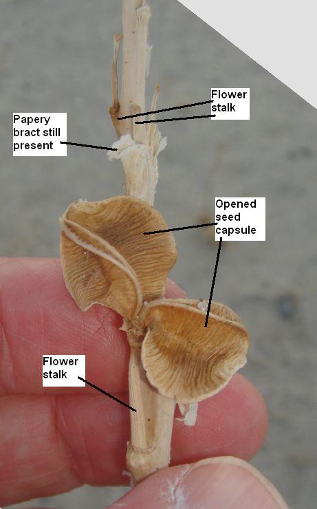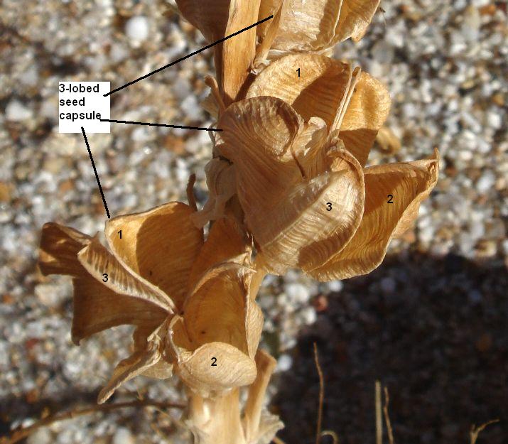 Note that only the three lowest flowers developed seeds on this plant. All pictures were taken in Clark Valley just west of Clark Lake on 9 December 2009.