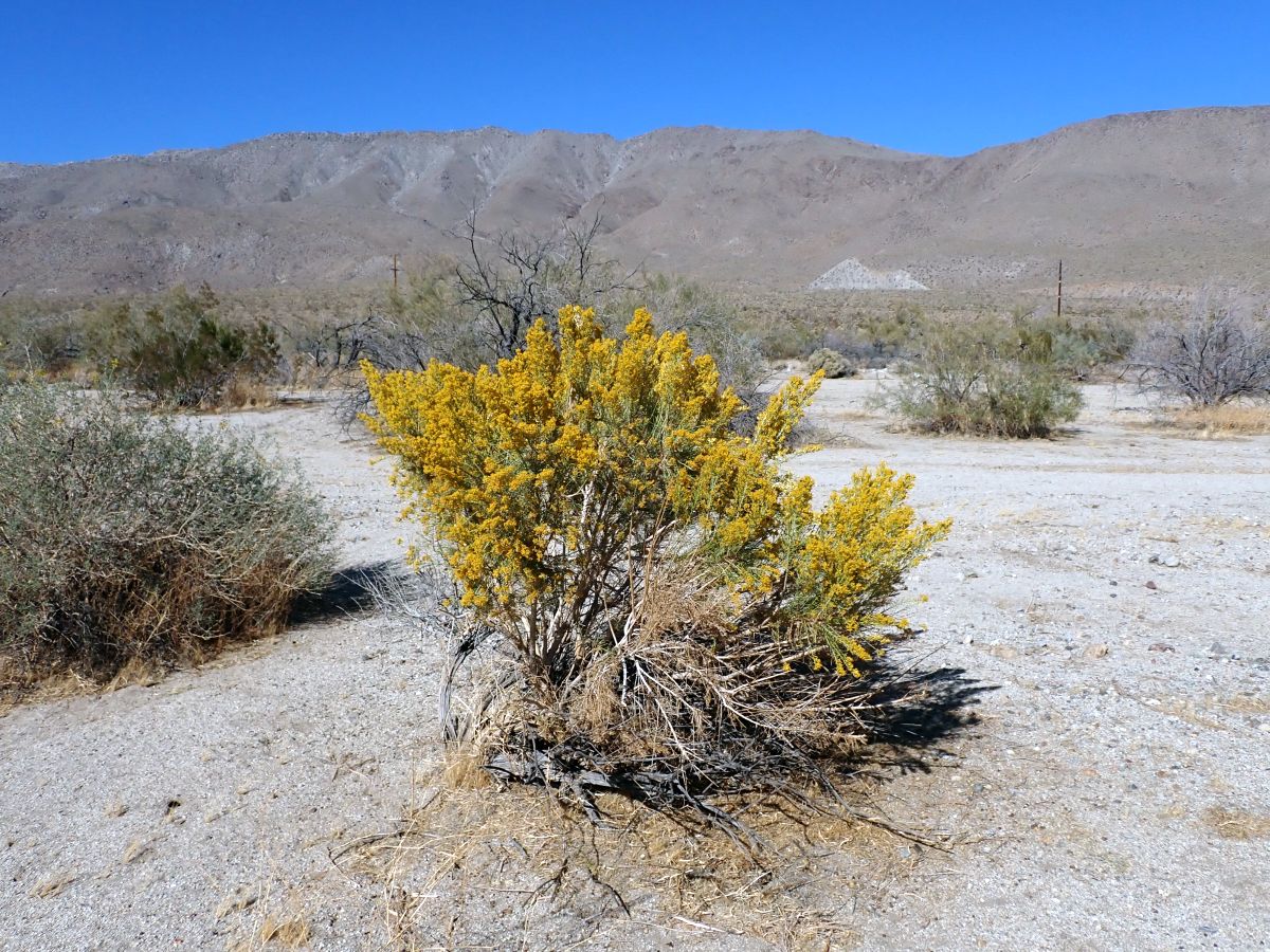 E. paniculata is one of the less-abundant shrubs in the ABDSP region. We estimate that there are between 5000 to 15,000 plants of this species. For comparison, our most abundant species, creosote and burroweed, have something like 10 to 100 million plants each here, and are therefore something like 2,000 to 5,000 times more abundant.