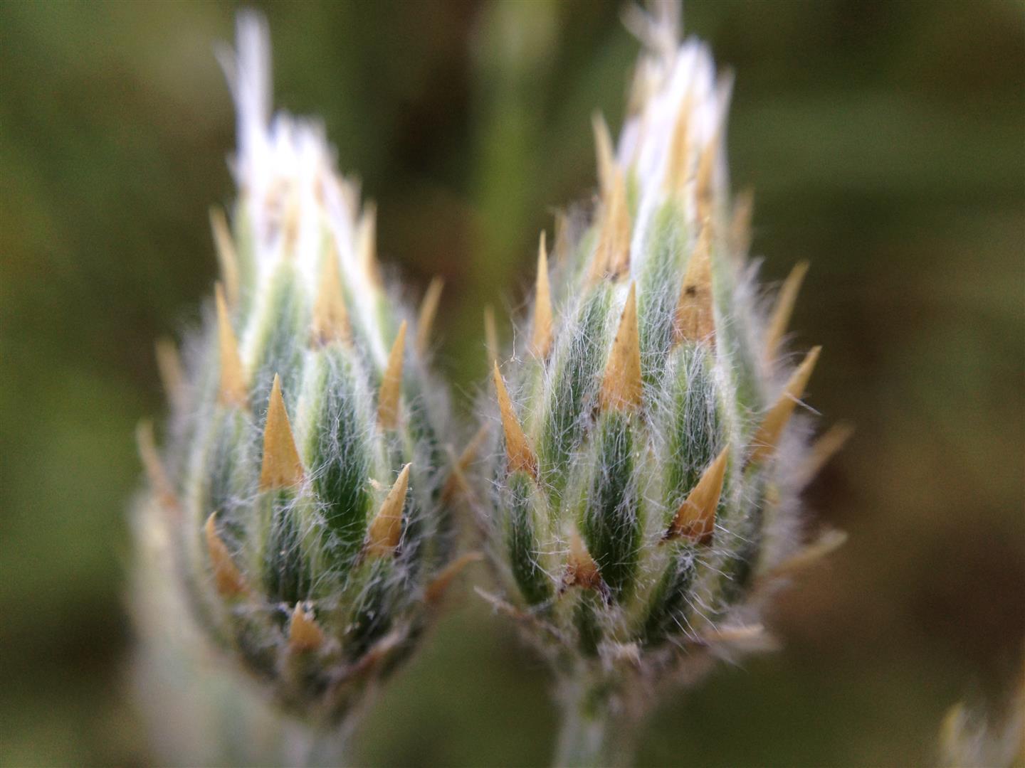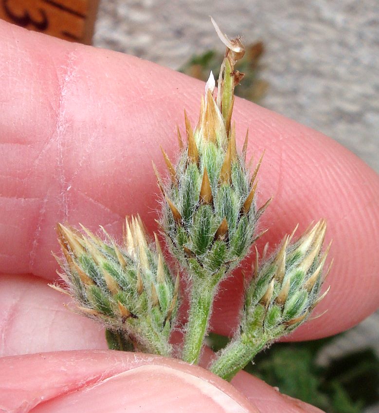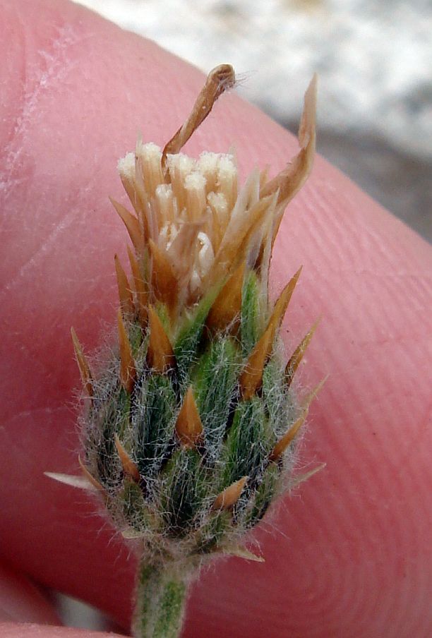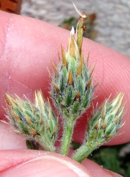 The name for this species This species was first identified as Volutaria canariensis, Canary Island knapweed. Fortunately, Chris McDonald sent our pictures to colleagues in Spain, who thought it looked more like Volutaria tubuliflora; see Photographs of V. canariensis and V. tubuliflora from northern Africa. However, the flowers of our plants are not close matches to the flowers of either V. tubuliflora or V. canariensis.