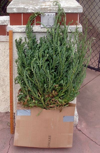As of 19 February 2014, over 800 plants have been found and removed. A small number of plants have been observed on private property, and Frank is still waiting for permission to access those properties to remove those plants. There well may be many more seeds present in other areas of Borrego Springs waiting for the next decent rainfall to germinate.