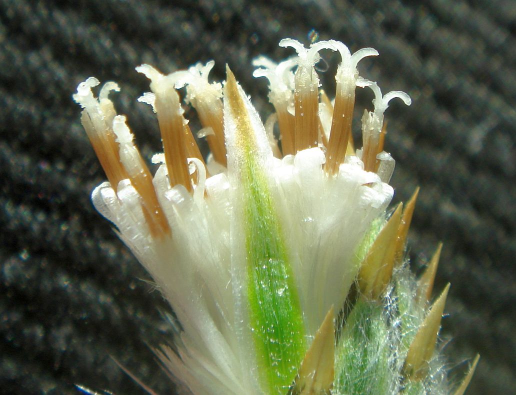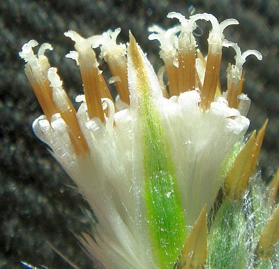 2011 April. Larry took the specimens to Jon Rebman at the San Diego Natural History Museum. Jon sent scanned images to David Keil, the Jepson Manual Asteraceae author, who sent them to Gerhard Wagenitz, an authority on Volutaria, and the author of the name V. canariensis. Wagenitz said that it did appear to be V. canariensis. (Note that it was later discovered that our plants were actually V. tubuliflora).