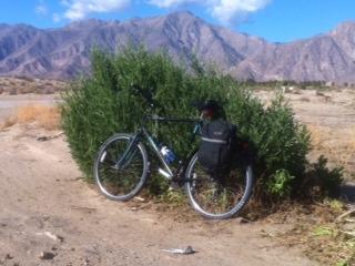 Fig. 1. There's a new bad guy in town, Volutaria, a new invasive knapweed, which appears to be yet another potentially-highly-invasive species similar to Brassica tournefortii, Saharan mustard. The bicycle is leaning against three mature plants of it in Borrego Springs. See also the Invasion of the Volutaria pulp magazine cover created by James Dillane.