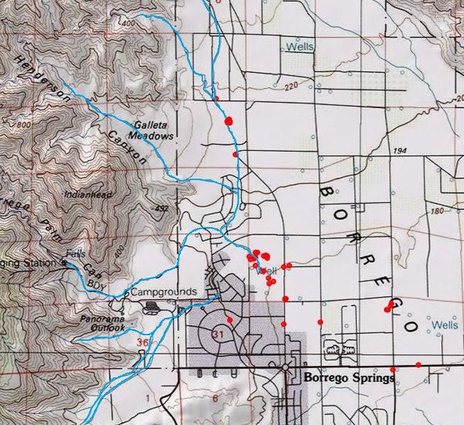 Until the 2014-2015 rainfall season, since the 2010-2011 rainfall season, Borrego Springs received essentially no fall / winter rainfall, making the monsoonal flooding the only chance for the seeds of this species to sprout in 2013-2014.