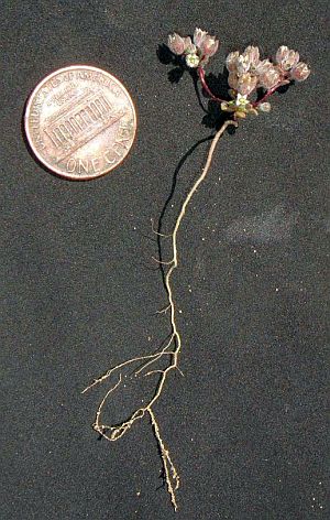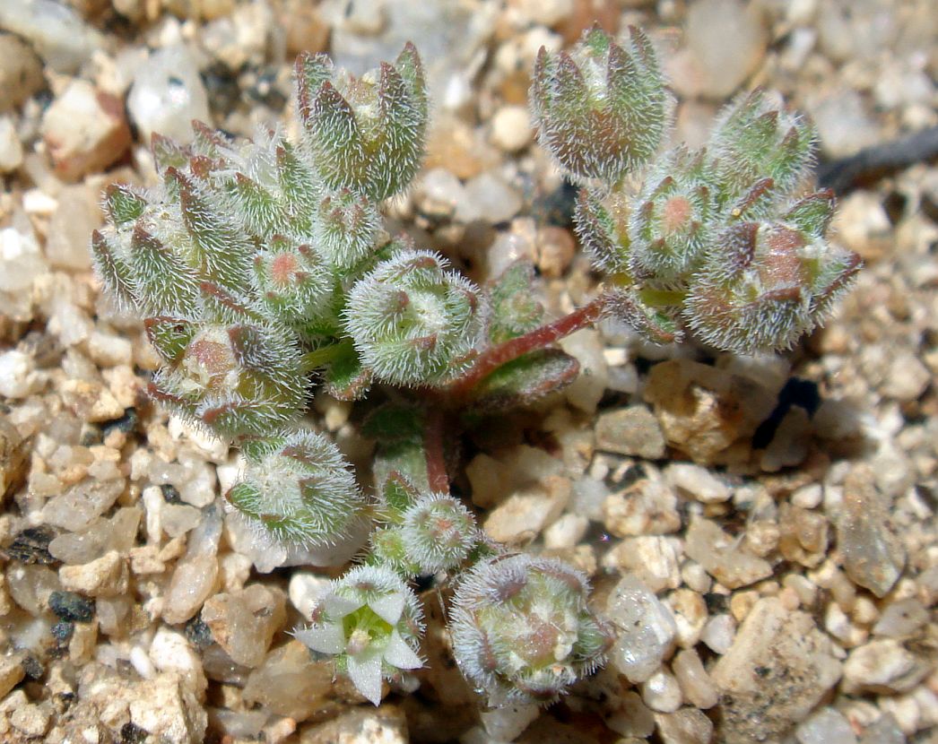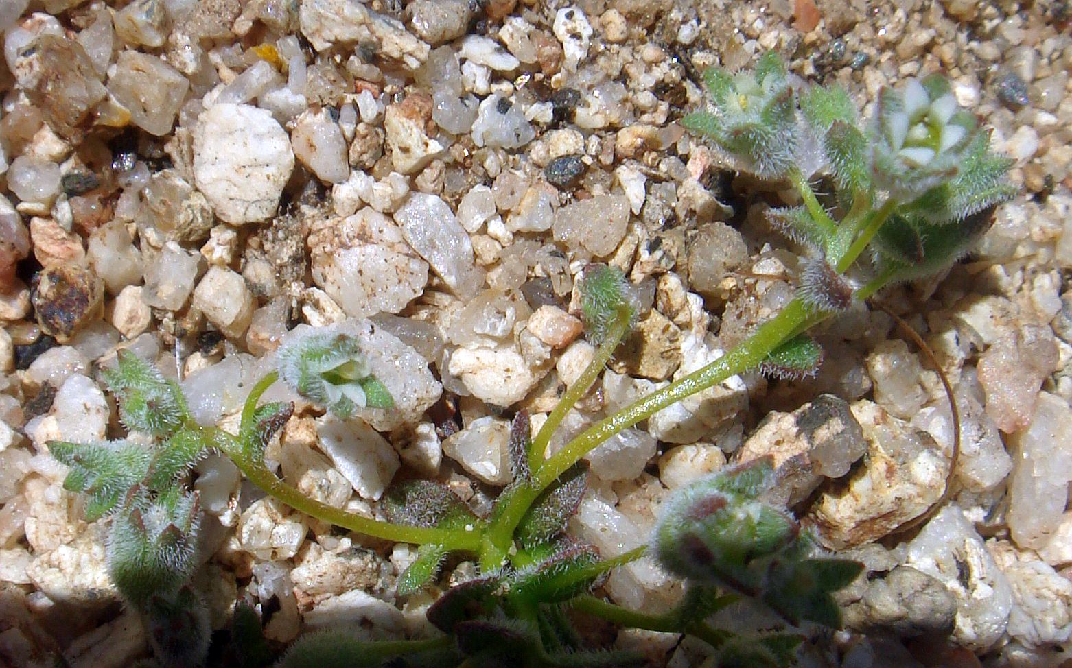 Introduction On 28 April 2012, as part of a floristic survey of the Wilson Trail area at Pinyon Ridge near 4000 feet elevation by all the authors, the first author was exploring a small sandy wash to look for Nemacladus and other similar diminitive plants. N. longiflorus var. breviflorus was found and recognized immediately, but there was a much smaller plant next to it that did not look like anything we had ever seen before (See picture with caption given below).
