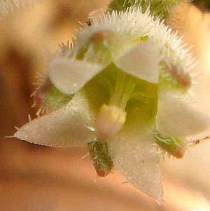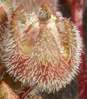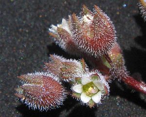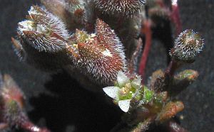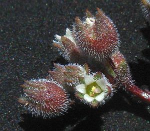 We spent 30 minutes looking for enough plants (20) so that we could voucher one. Pictures of that vouchered plant are below. The plant we vouchered was among the largest plants around, at 13 mm tall and 24 mm wide (1/2 in tall and 1 inch wide), and had fruit and flowers.