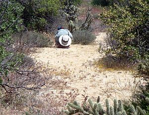 We searched for additional plants on subsequent trips in 2012 and 2013, and found a total of 94 plants at three locations in 2013 from four separate searches. Searches in 2015, 2016, 2017, and 2020 found zero plants, even though 2017 and 2020 were good rainfall years. In fact, late rainfall might be harmful to these plants if it results in flooding that resurfaces the washes in which they live after they had germinated.
