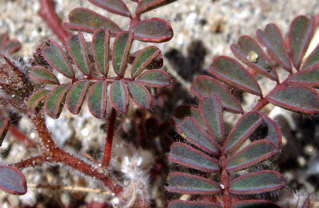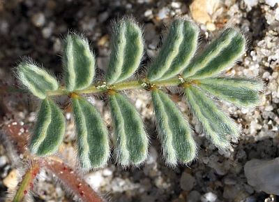Furthermore, Barneby, in his 1977 monograph on Dalea, states that Dalea mollis and D. mollissima "can be separated only with difficulty by coarser methods". Most of the characteristics he gave to separate them are on the flowers; here's his leaflet separation (italics his):