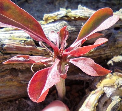 Right: a plant that appears to have had two years of growth, about 7 cm tall. The latest year's growth is obvious by being a different color.