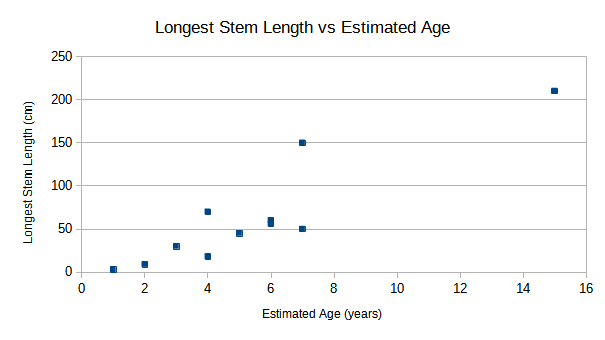 Fig. 2 shows the longest stem length vs. the estimated age of the plant.