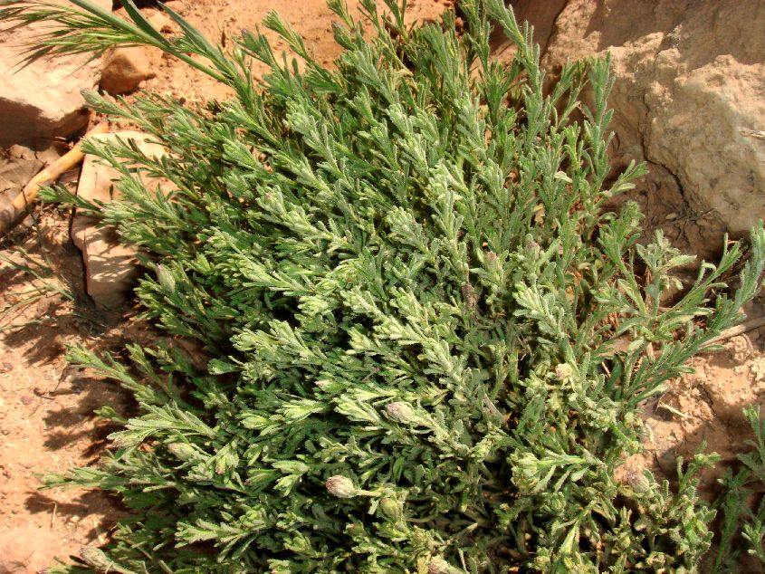 Identification status: 95% at best, since I haven't seen any flowers on this plant yet. The identification comes only from checking pictures for species on the plant list for this area. The habit, the leaves, and the buds, match these pictures of Chaetopappa ericoides.