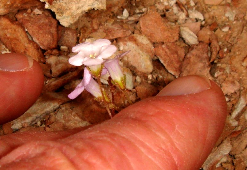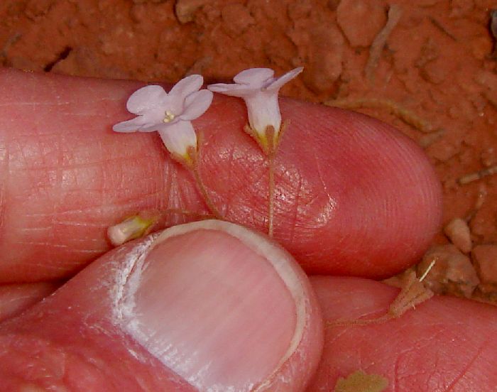 Pictures of the plants from the Bright Angel Trail are below. These plants had corolla lengths of ~8.2-8.6 mm, placing them within the P. filiformis part of the key. Note that the plants in my photographs, from elevations of 6630 feet and 5450 feet, appear nearly identical to the plants of P. glechomifolia in the voucher ASU217024 taken at 1400 feet shown in the SEINet picture, just a bit younger.