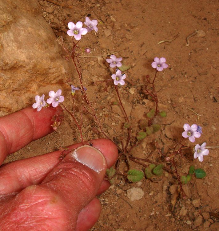 The claim that there are two extremely similar beautiful little phacelia species endemic to the Grand Canyon area, P. filiformis and P. glechomifolia, is a little hard to believe at face value. These two species have essentially the same geographic range (see below), look identical in overall habit, leaf, flower and fruit, and flower at essentially the same time. They appear to differ only in the size of their flower, and in their full elevation range (they have considerable overlap in elevation; see below).