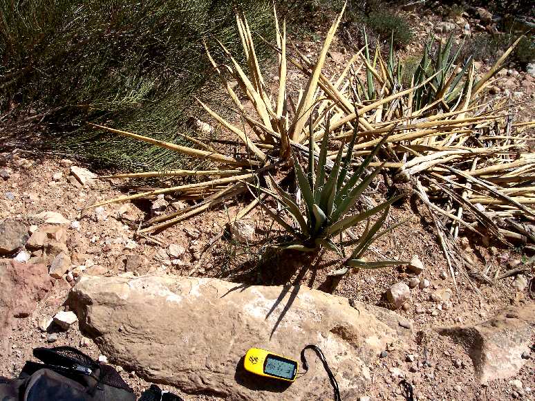 First occurrence on Bright Angel Trail: mile 0.43, elevation 6606 feet (2014 m). The first off-trail specimens are at mile 0.34, elevation 6662 feet (2031 m).