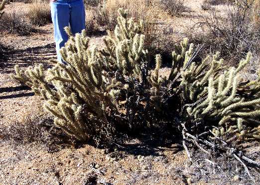 This page discusses four somewhat-similar chollas that are often confused with one another: Opuntia echinocarpa, O. ganderi, O. parryi, and O. wolfii.