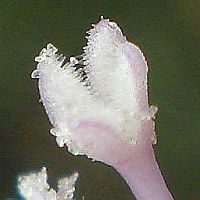 Photo by Aaron SchusteffFig. 3. Examples of the evolution of the stigmas for both species as they open and mature. Left: Clarkia bottae, from Monrovia Canyon Park on 21 May 2014. Some of the photographs show pollen attached to the stigmatic hairs. Right: C. dudleyana.