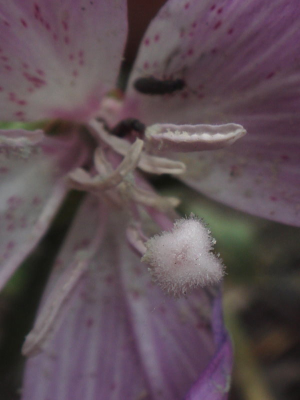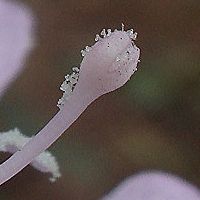 The unopened stigmas of C. bottae are cut only halfway to the base, and are initially longer than wide. They quickly become wider than long as the stigmas begin to open, since they open only from the halfway point. A central depression is visible until the stigmas become fully mature and the stigma becomes head-like.