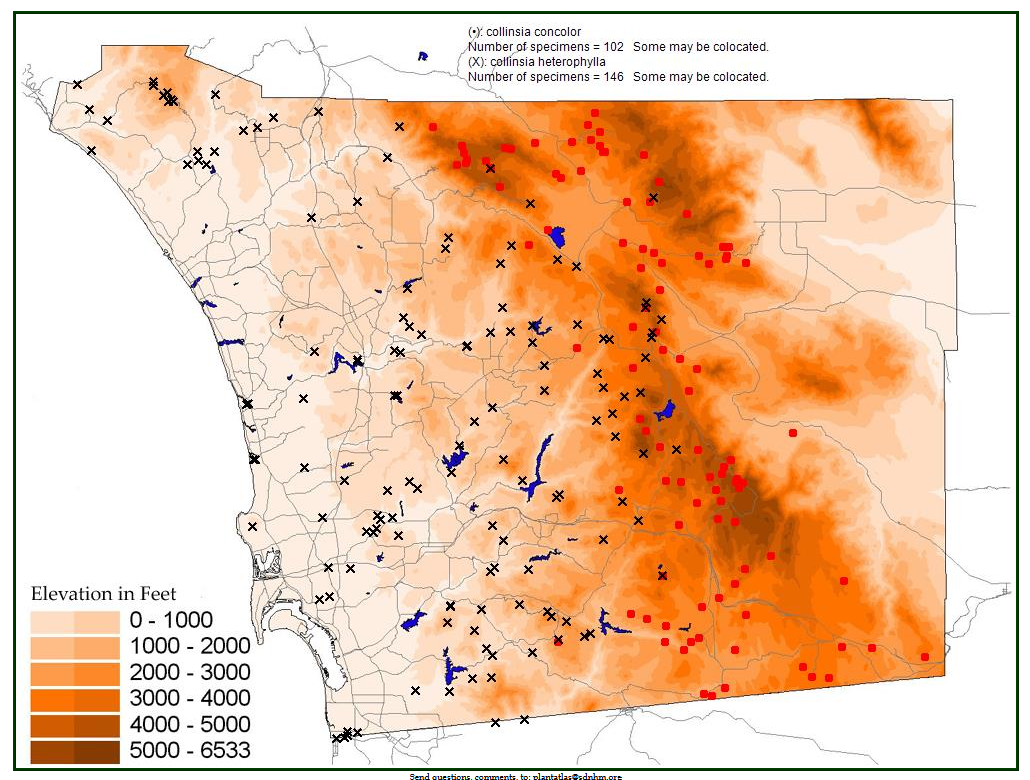 Geographic Distribution Fig. 6. Geographic distribution of Collinsia concolor and C. heterophylla from the San Diego County Plant Atlas page, retrieved on 27 May 2024.
