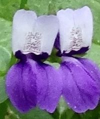 Fig. 1. Frontal view of a flower of Collinsia concolor (left) and C. heterophylla (right). Top row. Left: Unlabeled pix from an iNat observation of C. concolor by Jason Schock. Right: Unabeled pix from an iNat observation of C. heterophylla by Don Rideout.