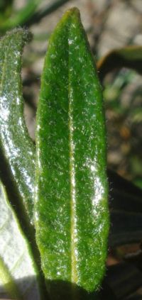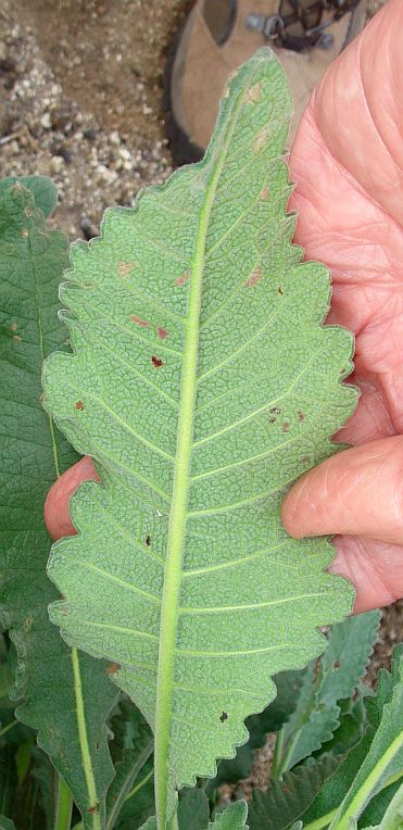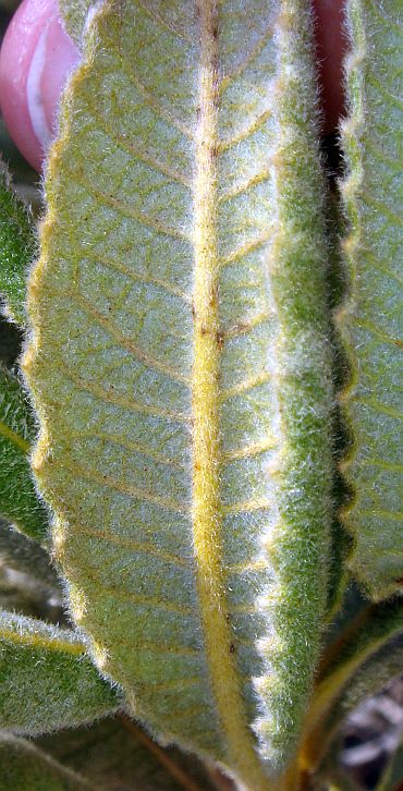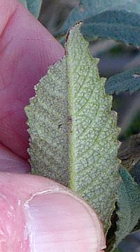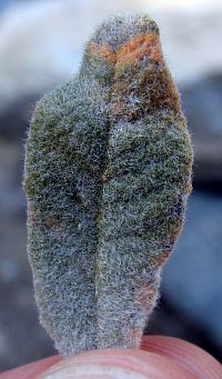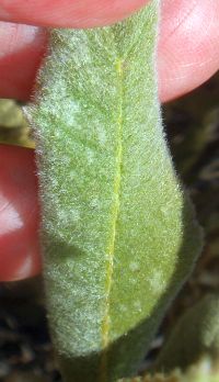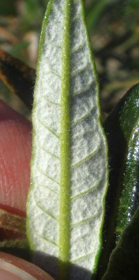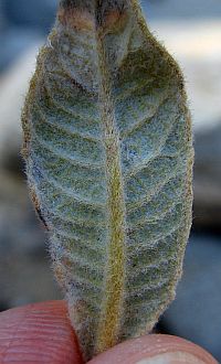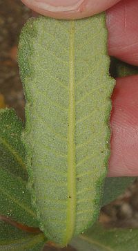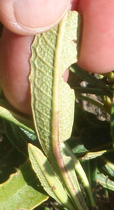 9'. Lf white-woolly below, lacking obvious net-like pattern ... E. trichocalyx var. lanatumBoth of the last two bulleted items above reference the net-like pattern in the veins on the bottom of the leaf. However, I've been confused since I often see an obvious net-like pattern on a lot of plants that are vouchered as E. trichocalyx var. lanatum, which is not supposed to have an obvious net-like pattern. And the distinction between tomentose and white-woolly is sometimes difficult, since these states grade into each other.