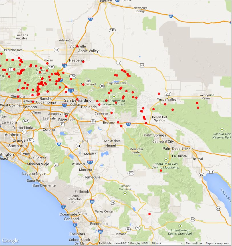 Fig. 1. Eriodictyon crassifolium and E. trichocalyx var. lanatum growing together just west of Idyllwild on 6/16/14.