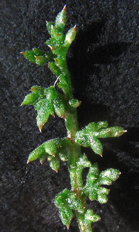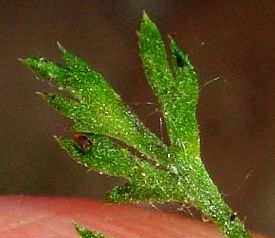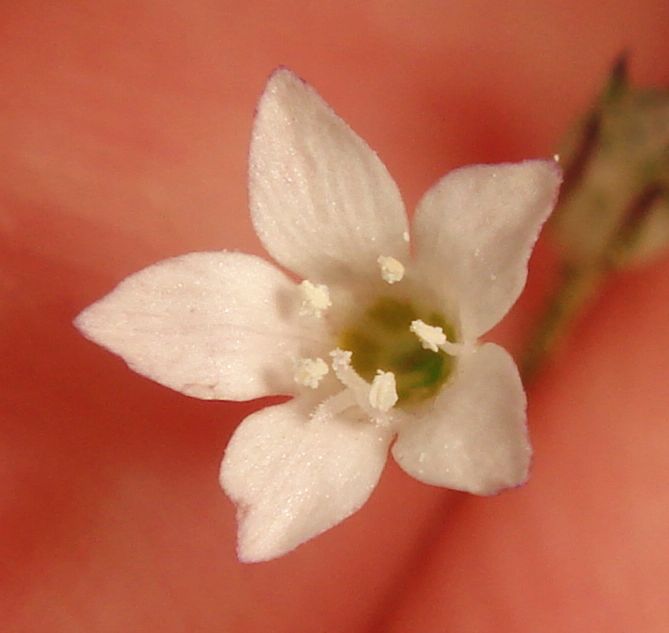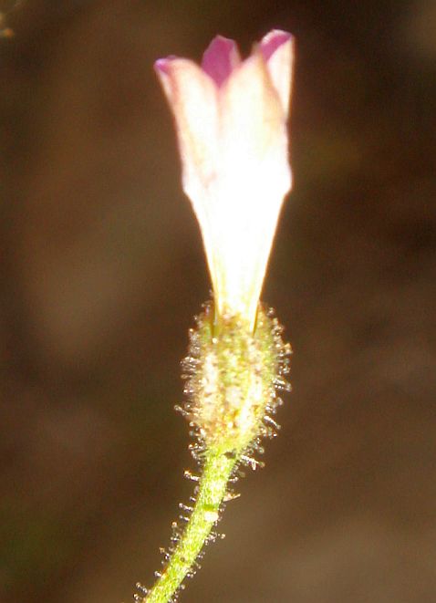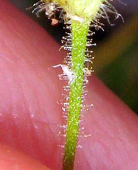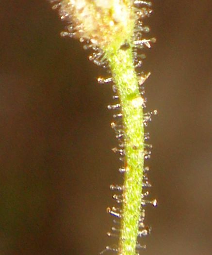 Characteristic G. angelensis G. australis G. stellata Base of Plant Usually a single delicate stem from base Often multiple stems from base Usually a single robust stem from base Leaflet Shape long linear ~linear, but not long linear, somewhat sickle-shaped short and pudgy Leaf hairs translucent ~linear translucent ~linear bent opaque white Pedicel glands long-stalked, clear, gland width much less than stalk length, glands mostly spherical short-stalked, glands about same width as stalk length, mostly flat-topped long-stalked, clear to dark, gland width much less than stalk length, glands mostly spherical, some flat-topped Calyx hairs long, translucent, non-glandular none to sparse like pedicel glands densely glandular, glands clear to black Flower color lobes lavender to white;