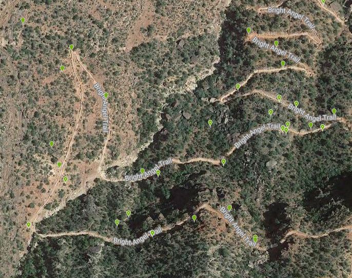 Clearly, a devoted GPS unit that is continuously running is able to give much better accuracy than a unit of any kind that is only sporadically turned on for a brief time. However, even devoted GPS units have a hard time in challenging terrain, like parts of the Devils Slide Trail at San Jacinto Mountain (see its note about GPS signals), and how many points are off-trail at the Bright Angel Trail in the Grand Canyon. I had to spend considerable time and effort to get good points for my 2019 observations there, despite a continuously-running GPS unit. The linked plot would have had many more off-trail points if I hadn't hand-corrected my points.