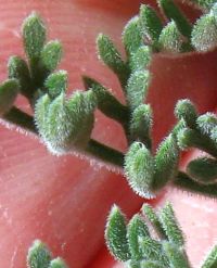 However, this pix of L. dasycarpum shows a density of hairs on the leaf rachis that is similar to that of L. mohavense. In addition, the ultimate leaf segments have so many hairs that it makes it difficult to ascertain their shape.