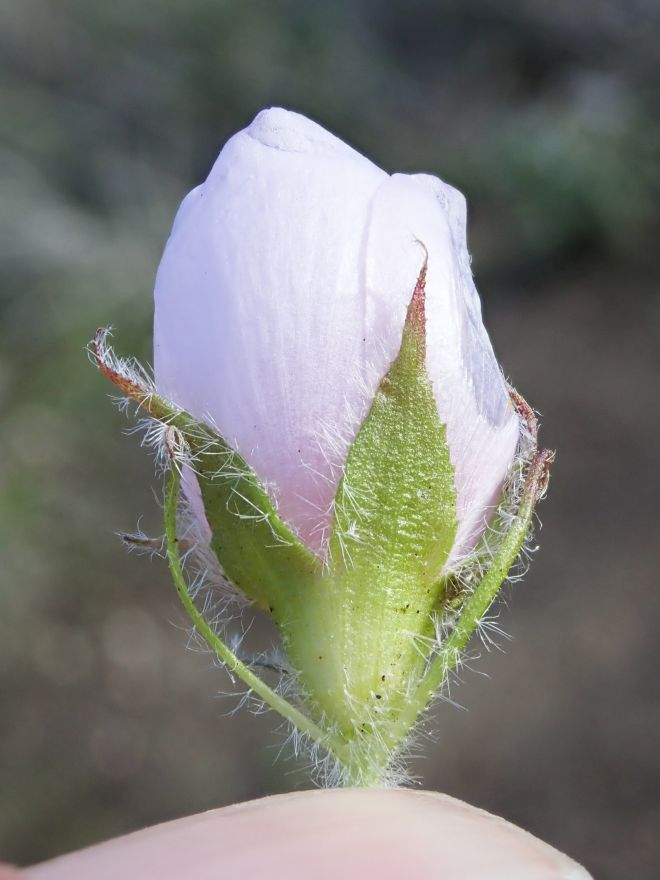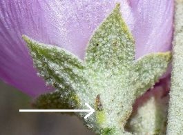 The most-frequently used name of "yellow stem bush mallow" is misleading, since some M. fasciculatus have yellowish stems and some M. densiflorus do not. Some of the M. densiflorus stem hairs in Appendix 2 have a yellowish tinge if you look closely. This often gives the stem a yellowish appearance in plants with denser hairs, especially lower on the stem where hairs may be denser. The sixth photo down of M. densiflorus (just above the first pix of var. viscidus) in Appendix 2 is a great example of this.