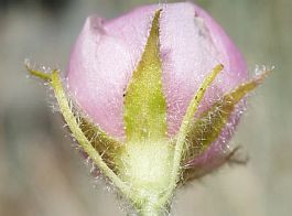 Whitish calyx; long calyx bractsFig. 1. Left column: Malacothamnus fasciculatus. Middle column: M. densiflorus. Right column: M. enigmaticus. For common names, see below. Top Row: The corollas (petals) do not distinguish any of our three Malacothamnus species. The differences in the centers of the flowers are due to the stage of maturity of the stamens.