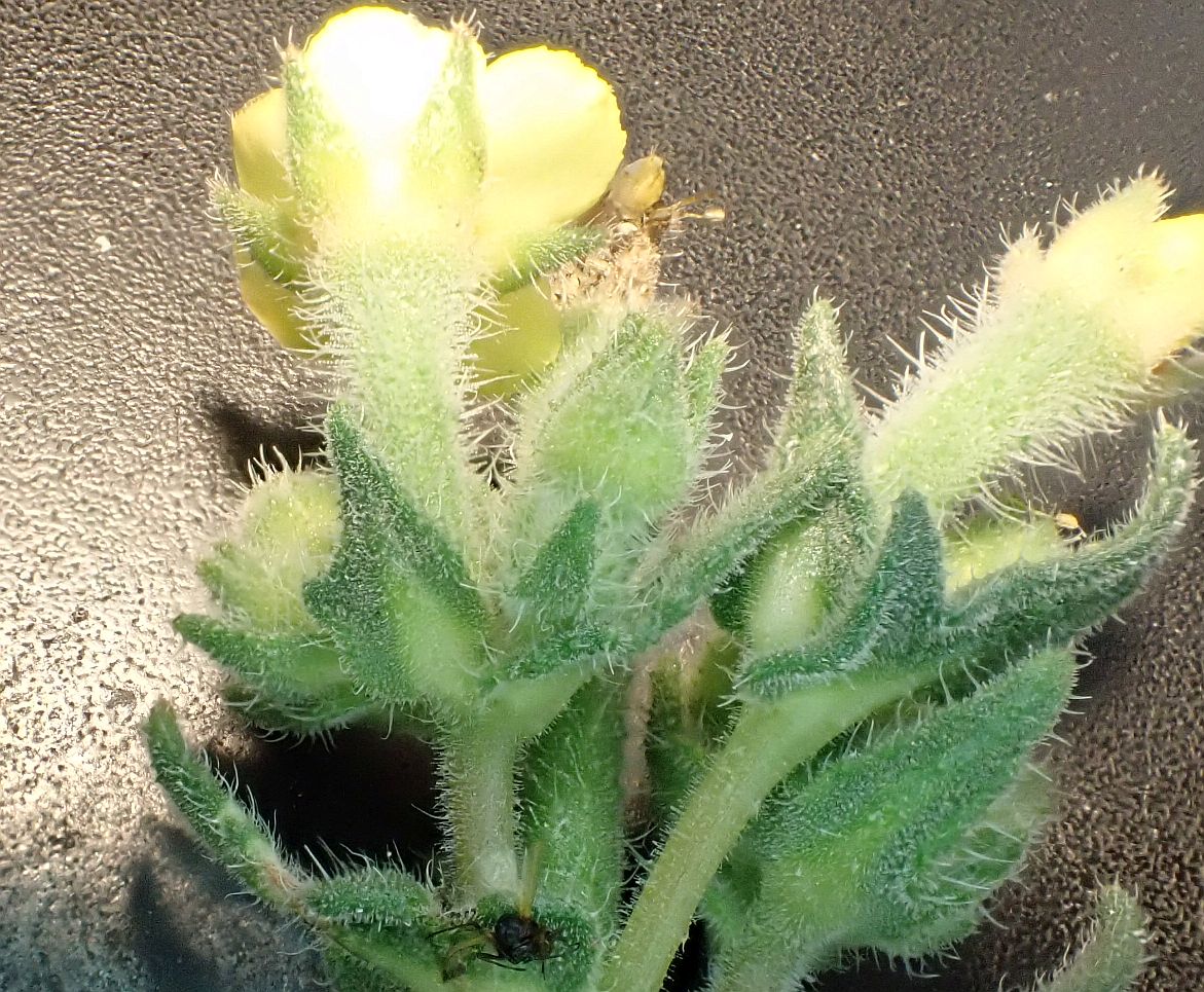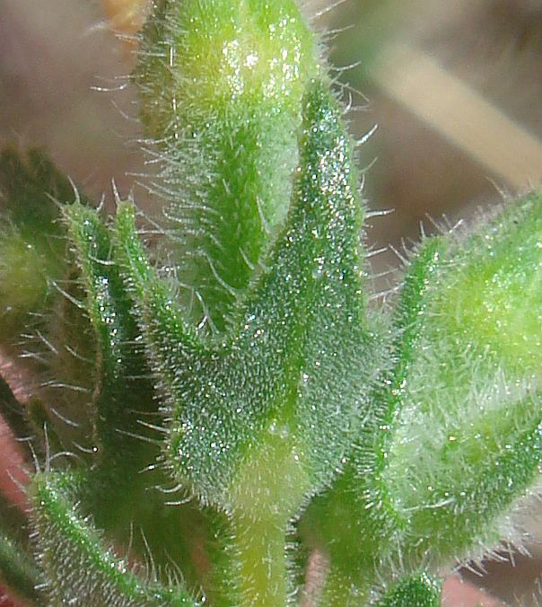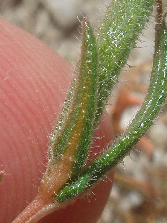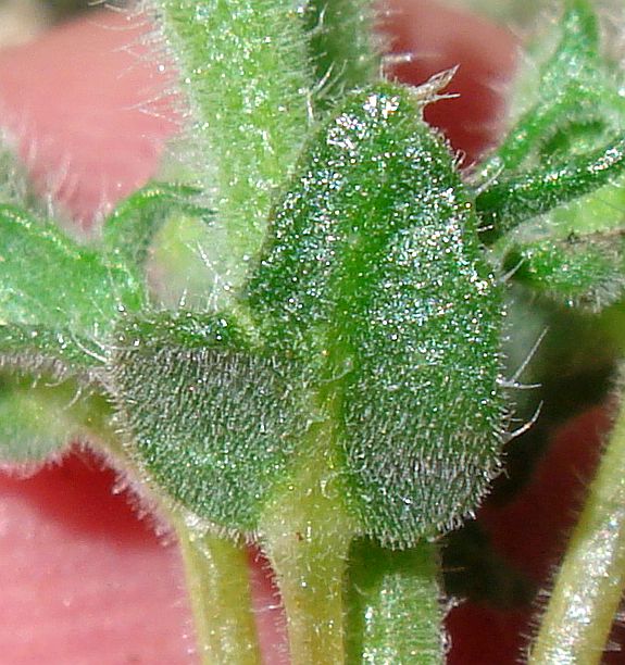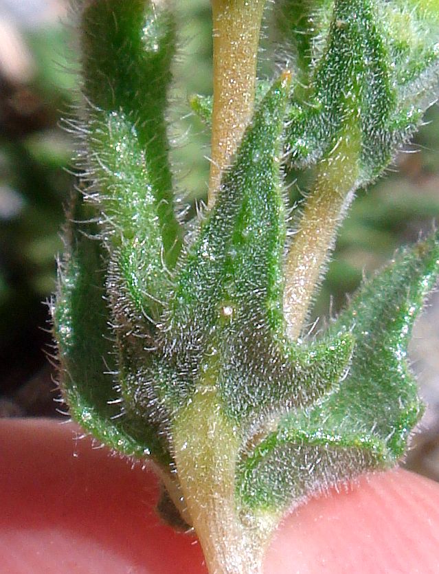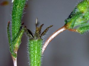 Fig. 2. Photo showing the difference between inflorescence bracts and flower bracts, and the "special case" of the first flower / fruit. The lowermost fruit in this pix is a "special" fruit because it has no flower bracts, and because it can curve up to 45° at maturity for M. montana, and up to a full 180° at maturity for M. albicaulis. See photo of a 180° curved fruit of M. albicaulis from Canyon 41.