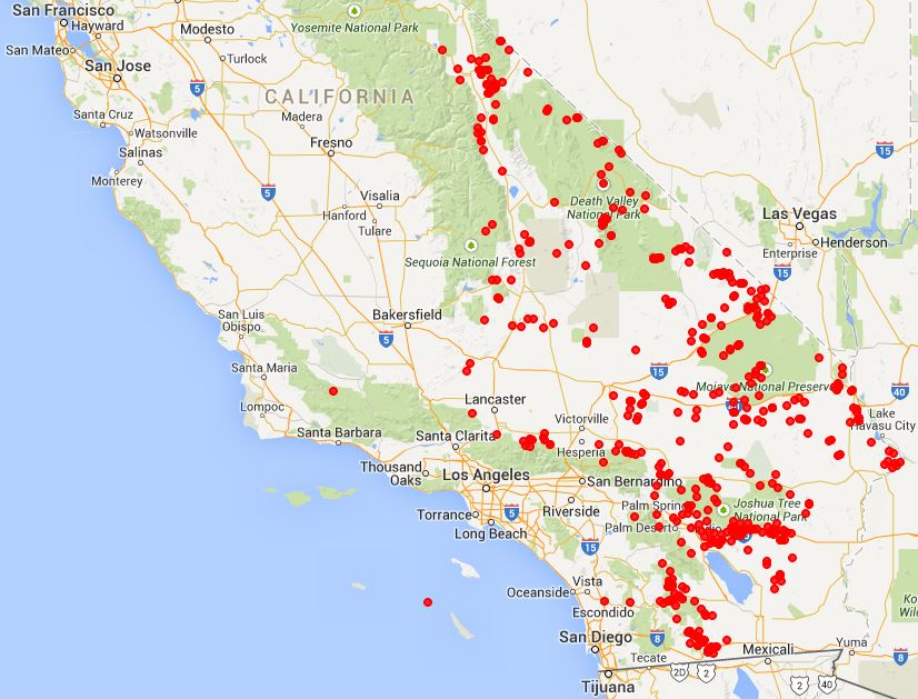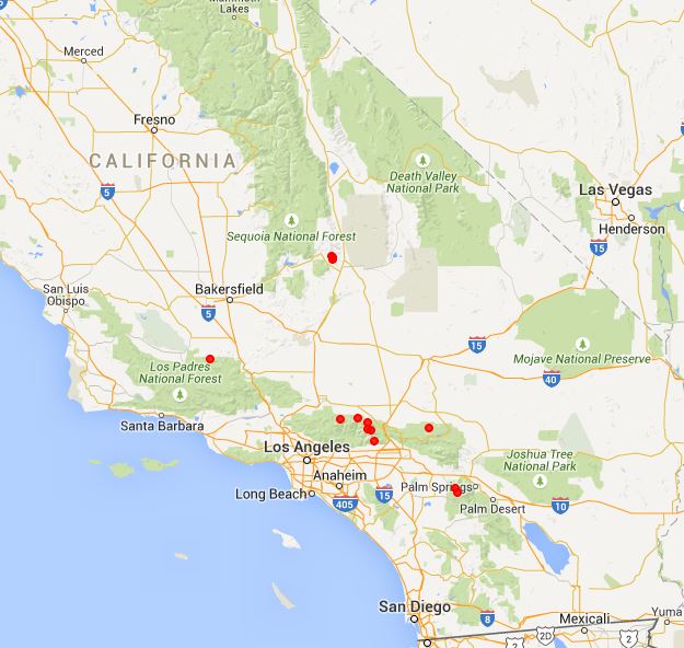 - an area on the north side of the San Gabriel Mountains in the Mohave Desert transition where there are a fair number of vouchers of both species; and