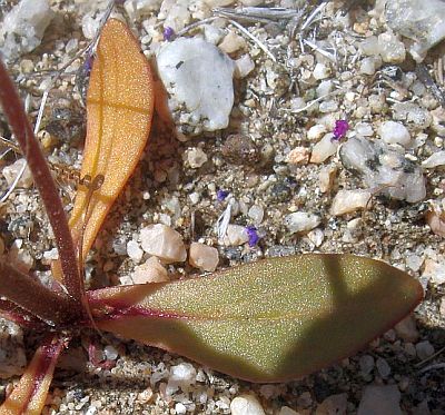 Although the leaf shape was used to discriminate these two species in Munz 1974 (leaves ± elliptic for M. bigelovii, and ± lanceolate for M. fremontii), and the leaves may have different shapes between the different species at times, this seems like a very unreliable way to distinguish the species since the leaves very markedly even on a single plant.