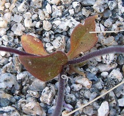 The Jepson Manual Second Edition treatment says that the entire plant of M. bigelovii is densely hairy, whereas the leaves of M. fremontii are lowest glabrous, upper hairy. Fig. 2 shows the difference in the hairiness of the leaves for two young plants, most of which would be the lowermost leaves of a plant in bloom, as well as the difference in the hairiness for basal leaves of mature plants.
