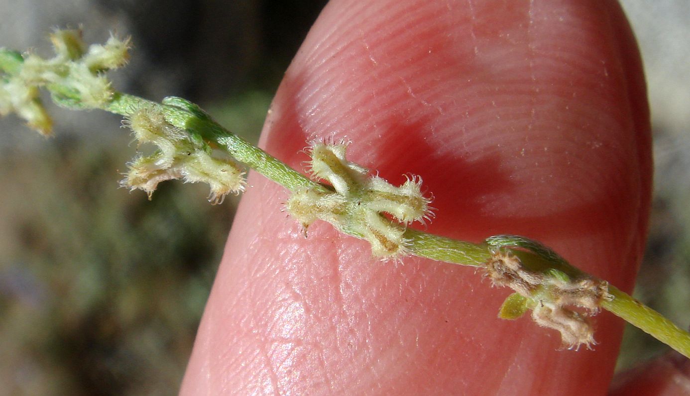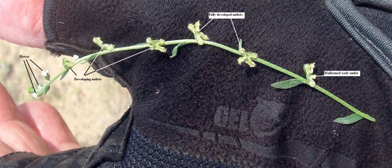 Fig. 4. The nutlets of P. setosa, the only Pectocarya species in southern California with roundish nutlets (including the gum). Click on the picture for a picture of more of the plant.