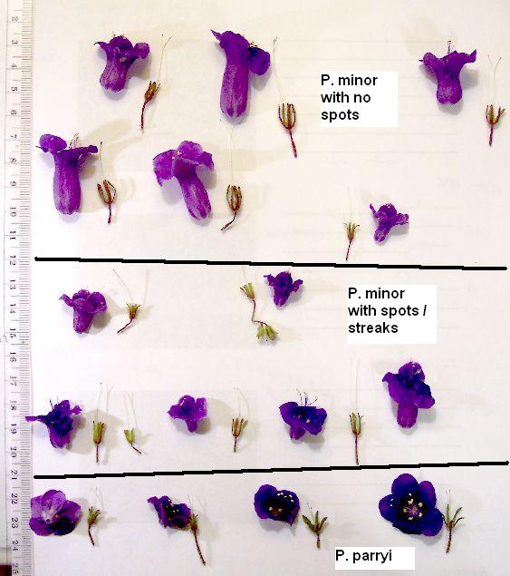 In the field, the P. parryi flowers were arbitrarily selected from a population at one location. The flowers of P. minor were taken in three or four different areas, with the first area chosen because it had flowers with spots.