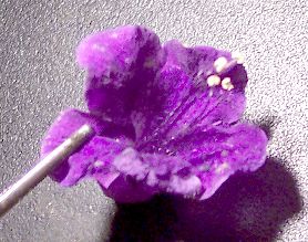 Photographs of P. minor flowers with cylindric tube present and spots or streaks