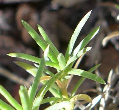 Leaf lengths may range to larger values for P. austromontana, but the difference seems small enough to not be very useful for determination. I measured a range of 6.5 to 17 mm for plants of P. austromontana in the Van Dusen Road area of the San Bernardino Mountains, and 6 to 12 mm for plants of P. diffusa from that area.