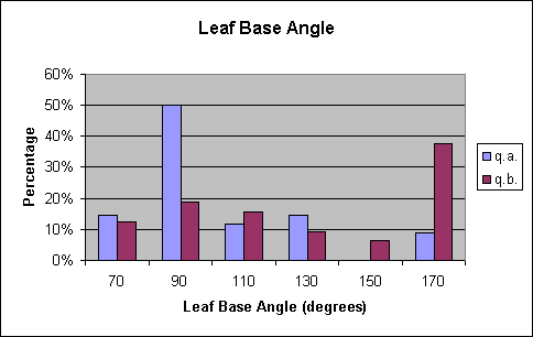 Overall, the q.b. leaves are clearly green, with no modifier for the color. The q.x.a. leaves could be described as gray-green, dark-green, or milky-green. However, note the similarity of the colors at times, even as seen by the camera, from different perspectives.